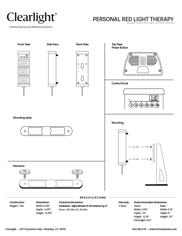 Clearlight PERSONAL Red Light Therapy promotes focused healing and rejuvenation. Its adaptable design allows you to concentrate on certain parts of your body, like your face, hands, feet, arms, and more.